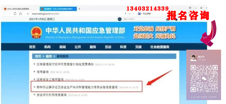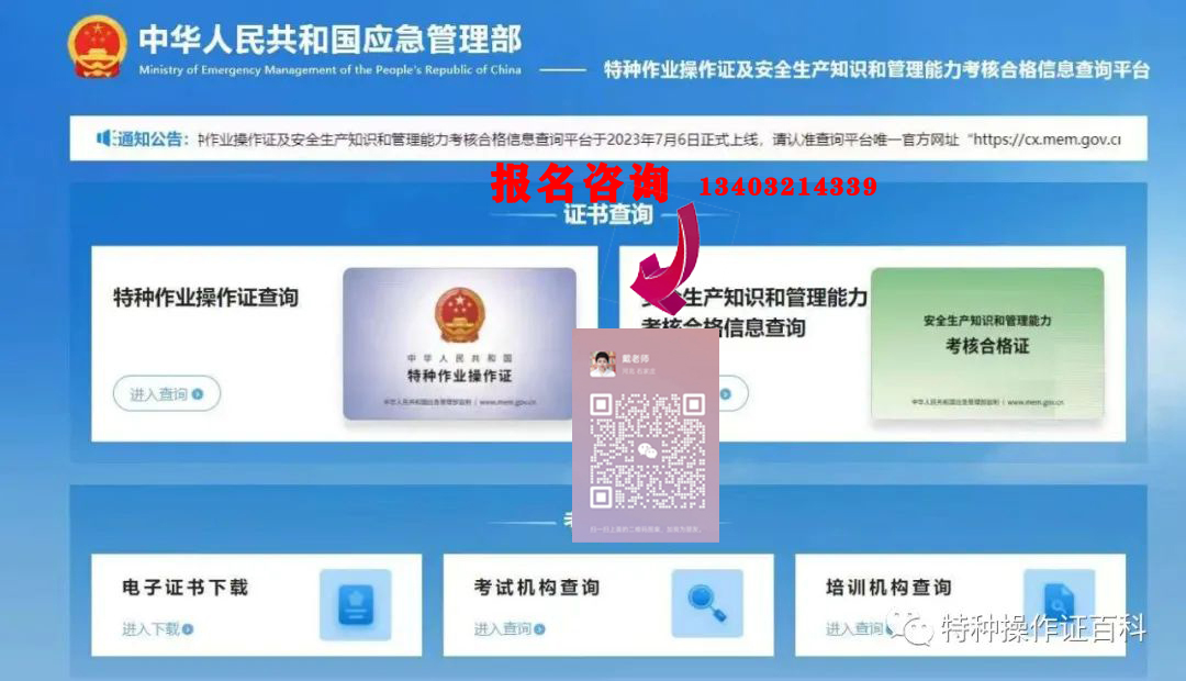 登錄應(yīng)急管理部政府網(wǎng)站(ttp://www.mem.gov.cn/),從“服務(wù)”中的‘查詢服務(wù)’進入“特種作業(yè)操作證及安全生產(chǎn)知識和管理能力考核合格信息查詢平臺”(以下簡稱“證書查詢平臺") ,使用注冊并實人認(rèn)證的手機號登錄系統(tǒng),下載打印電子證書。