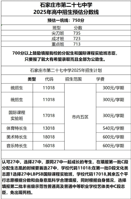 石家莊42中、24中、27中、15中、1中系、2中系、正中、精英、等近30所高中分?jǐn)?shù)線及收費(fèi)標(biāo)準(zhǔn)!